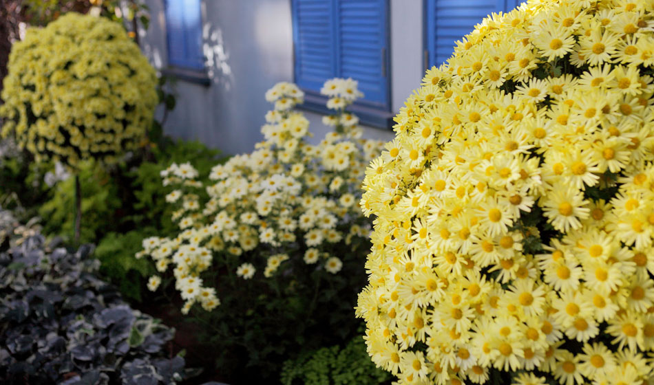 青の背景で黄色が一層鮮やかです