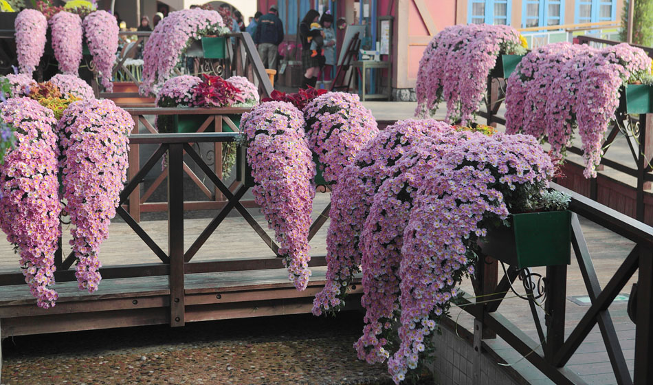 菊の飾りが素敵です 上から吊るしてあるのはカボチャに見立てて!