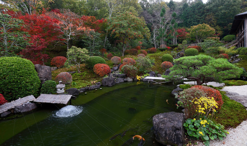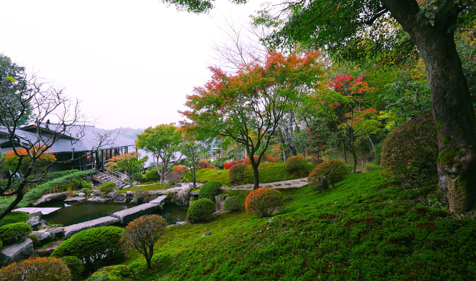 築山の一番奥は杉苔の緑が美しく、紅葉を一層華やかにしますネ