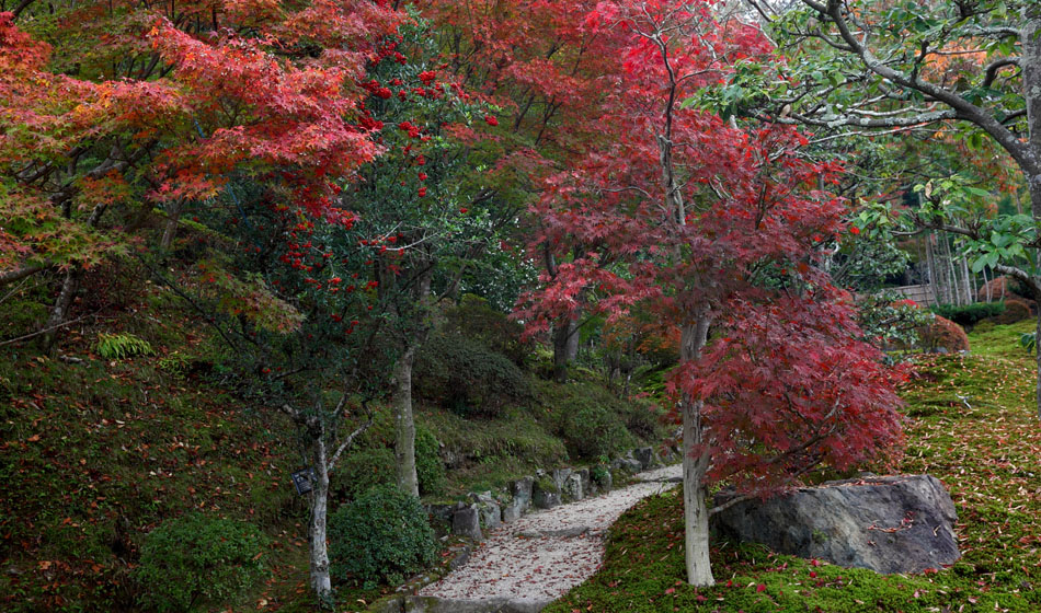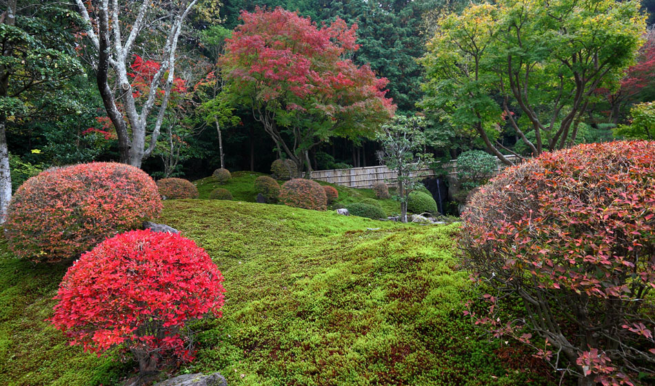 杉苔の緑に紅葉が映えますネ