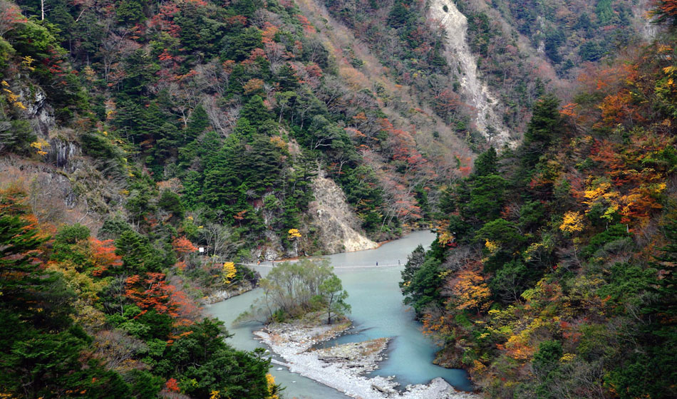 大井川支流の寸又川に掛かる「夢の吊り橋」です