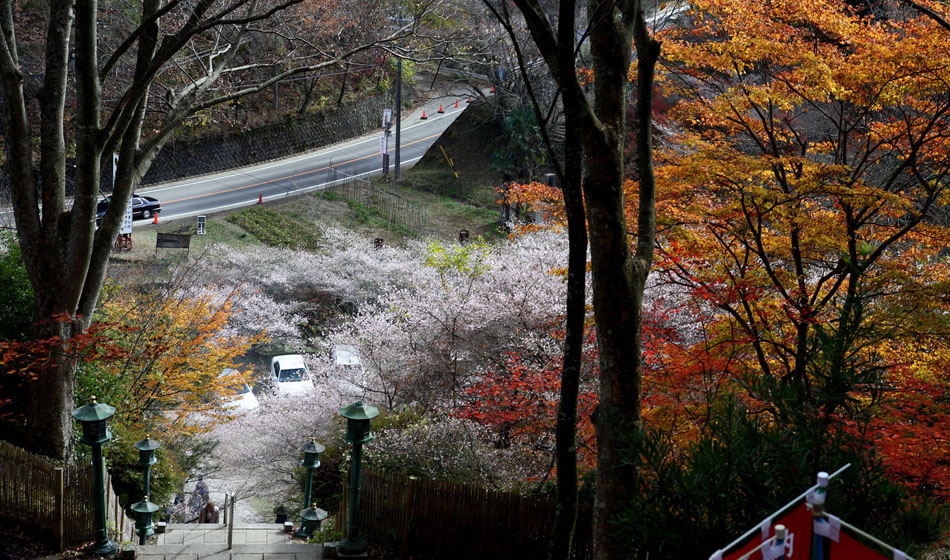 石段の上からの眺めです 桜も紅葉も立派にキレイですネ