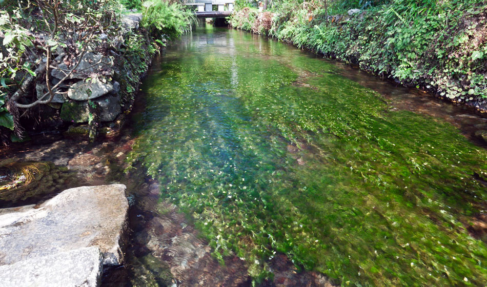 | [バイカモ] 2010.08.16 醒ヶ井 宿場町のほぼ中心部です 湧水を水源にした地蔵川の水がバイカモを育みます | 2010ホーム 一覧表 ▲前へ ▼次へ |