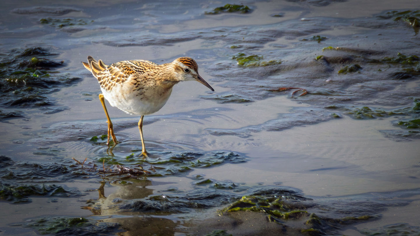 2025.12.19  小潮の引いた干潟で採餌です やはりハマシギの群れと一緒にいます
