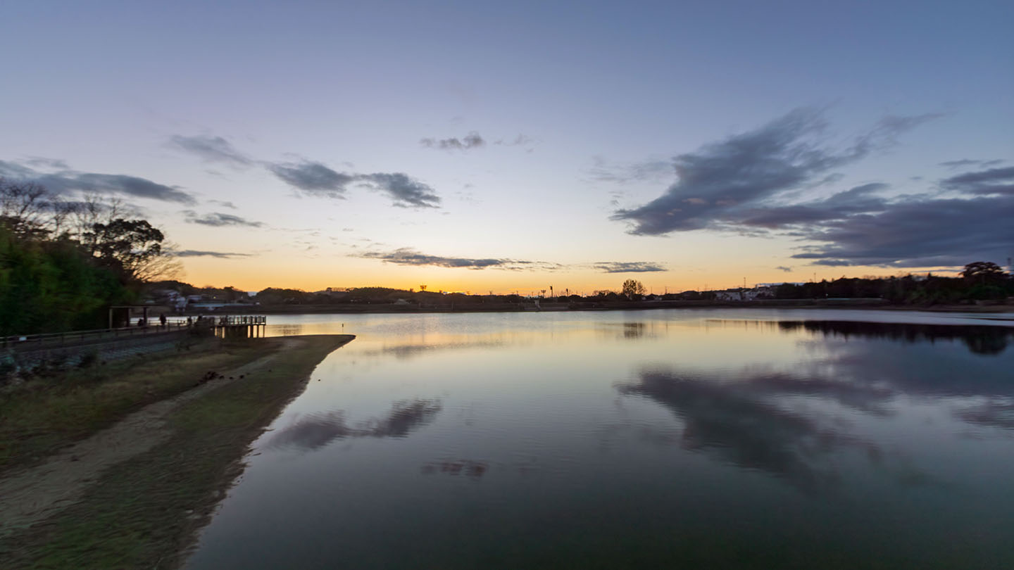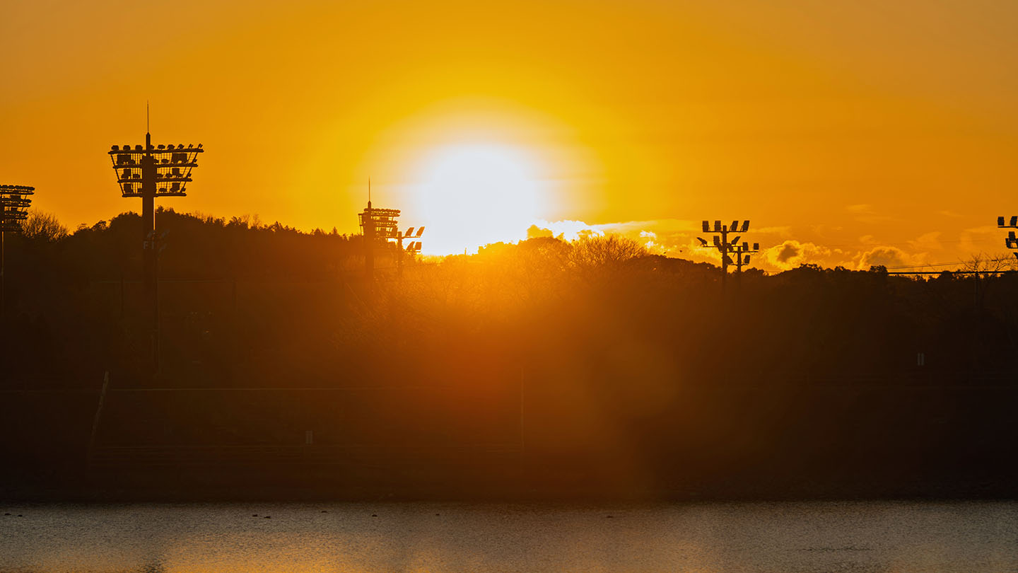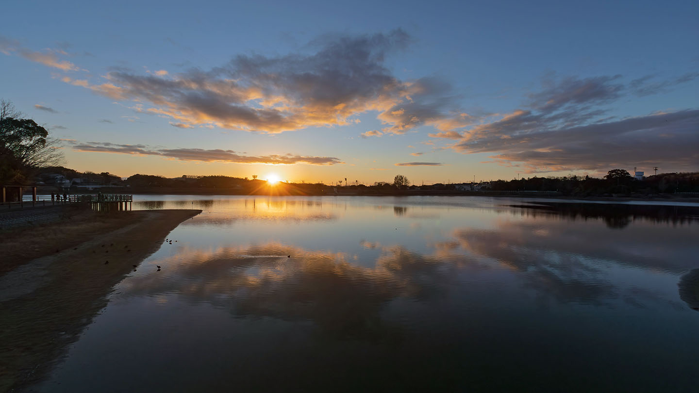 2026.01.01  勅使池/豊明市 池越しの初日の出です 鳥撮りでいつもお世話になっている池です