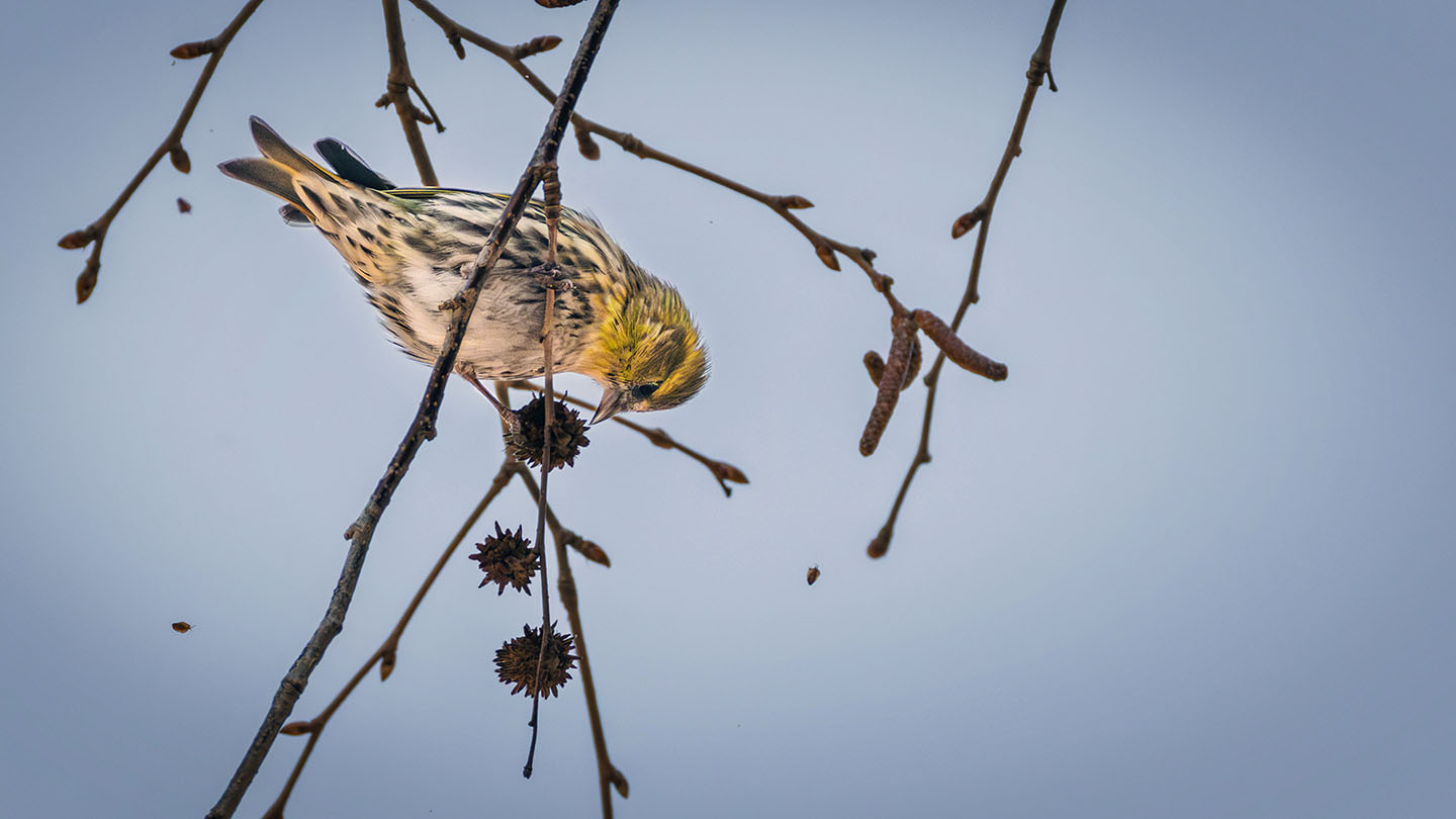 2026.01.18  今季ここで3回目の撮影です ハンノキの実を突いています 殻が飛び散っています 夢中でやっていますね