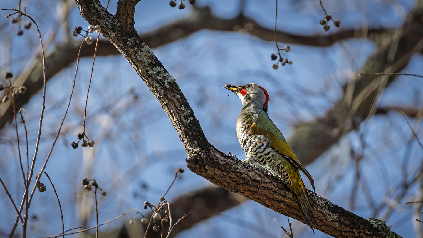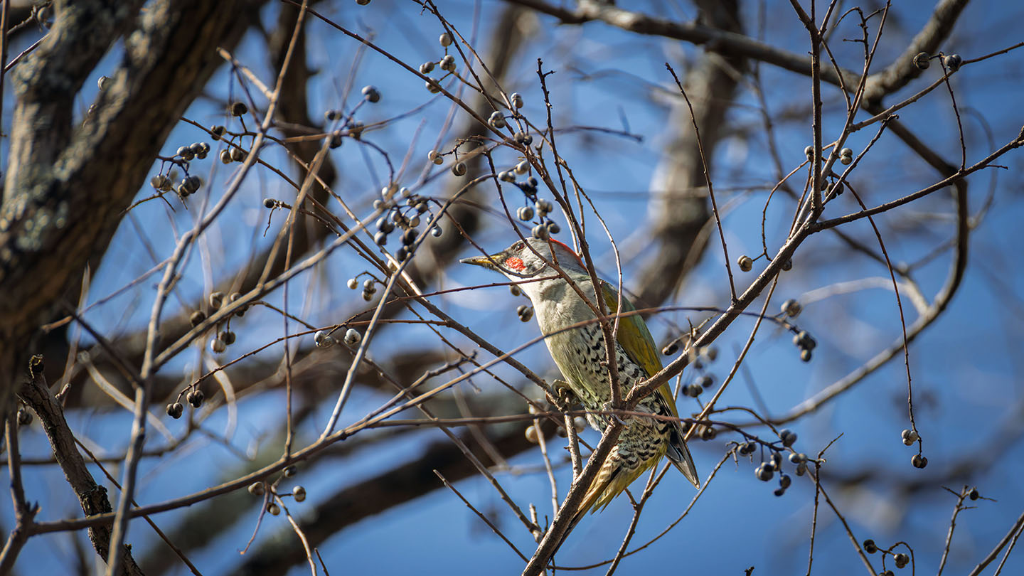 2026.02.14  ここで久しぶりに見ることが出来ました 4年ぶり(2022.03.04)です ナンキンハゼの実を啄んでいます