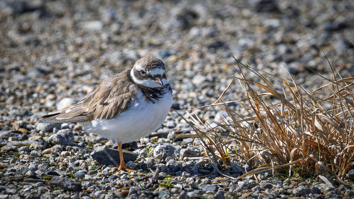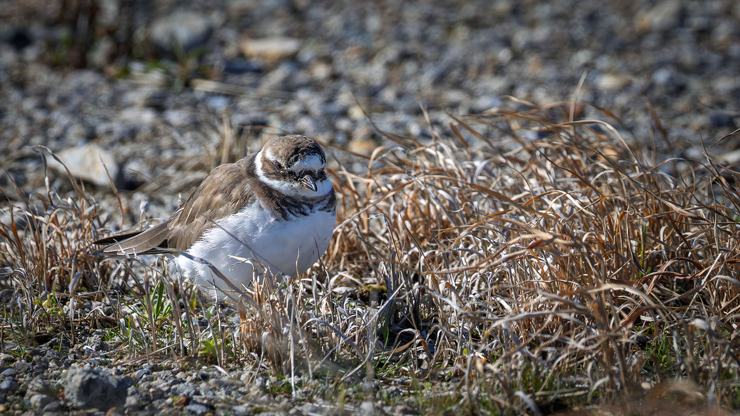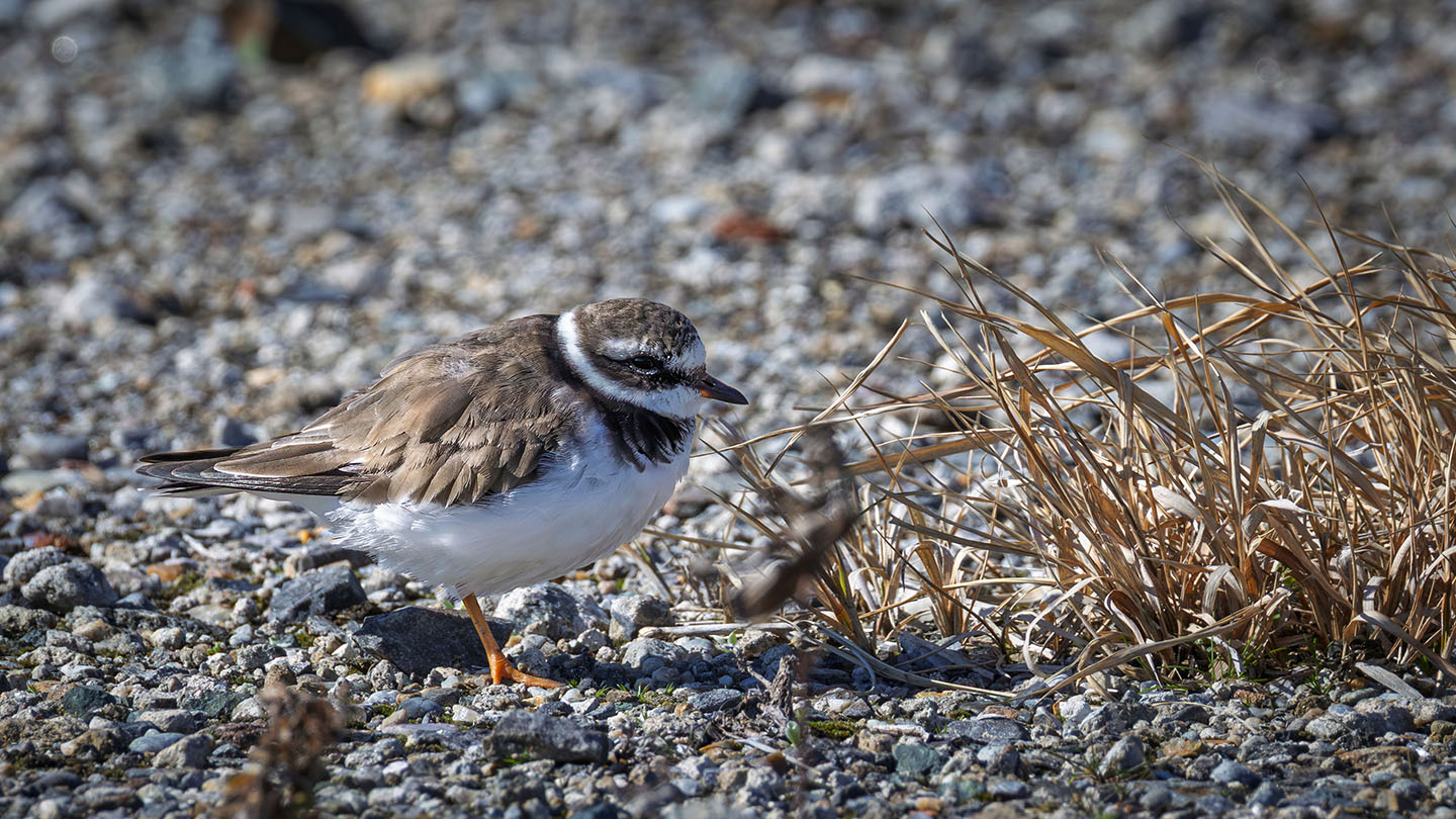 2026.03.04  冷たい北風の吹く砂利地の草の陰でじっとしています