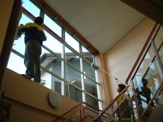 業者に我々では出来ない2階の窓ガラスの清掃をしてもらいました