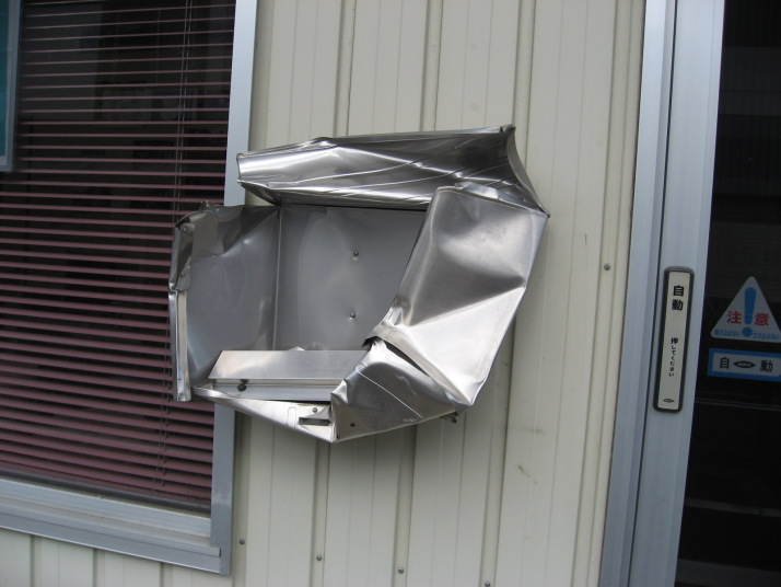 ポストをつぶし、上のくりっく看板も傷をつけ・・・