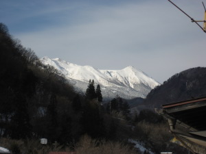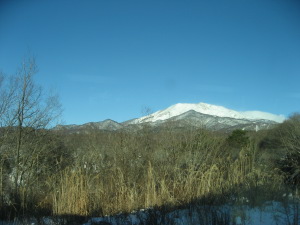 | 車窓からの御嶽山 |