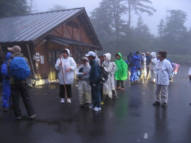 28日朝4時ごろ雨の中6合目より19名が登頂開始