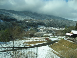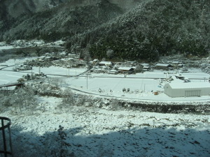 恵那あたりから積雪を確認
