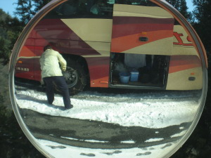 この頃の天候不順でバス走行中も雨が降ったり止んだり