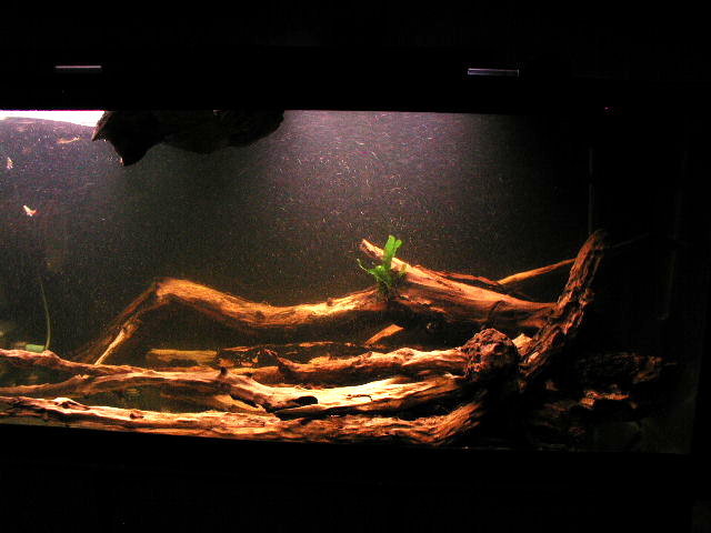 >栗の枝の流木を乗せたものです。底の木片がちょうど洞窟を