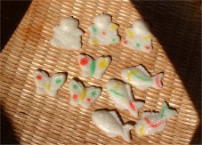 生地に色をつける方法以外に、型から出した後、はけを使って色をつけるなどいろいろあります |