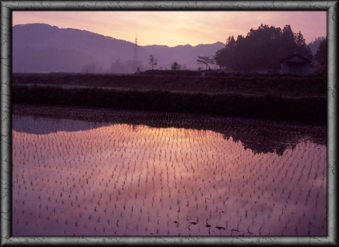 白馬村・水田の朝日