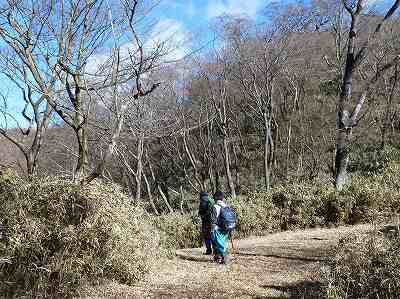この山は笹が多い山です。登山道の両側にずっと細い笹が生い茂っていました。