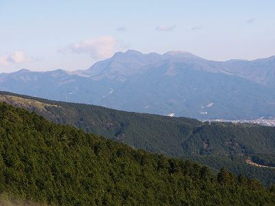 富士山の右下に丸い頭を出しているのが越前岳(1,504m)。 右に高く見えるのが位牌岳(1,458m)です。