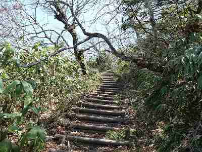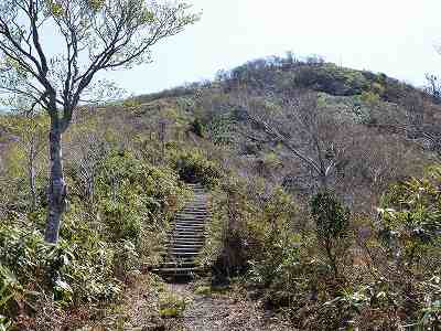 にせピークの先は山腹をトラバースするように付けられた階段を登ります。