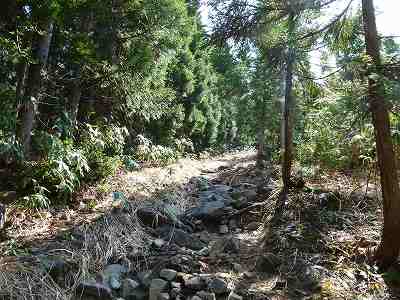 途中までは昔の林道だったかもしれません。石がゴロゴロした道です。