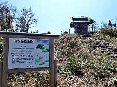 ここには登山道の案内図があり、また、『藤原頼保公鷲退治顕彰堂』 が建っています。