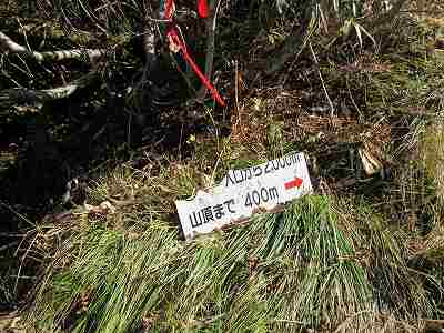山頂まで1200m標識から10分歩いたところに『山頂まで400m標識』が現れました。