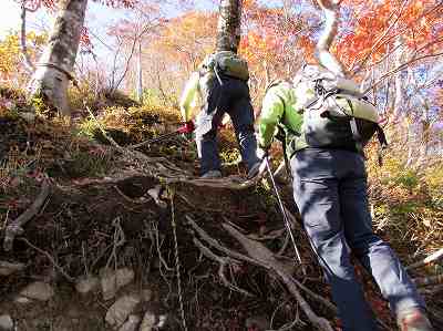 紅葉の写真をとりながら下ってくると激下りにさしかかります。