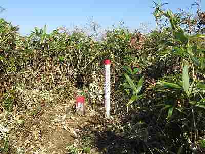 この山頂には1等三角点が設置されていますが、背丈以上に伸びた笹に囲まれているため ほとんど眺望がききません。