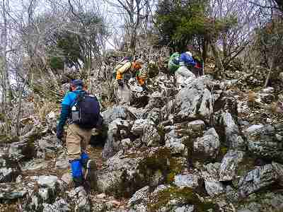 セツブンソウなど花はないかと岩の間を探しながら登って行きます。