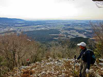 そんな岩場を歩いて山頂手前の展望のよいところまでやってきました。 南には鈴鹿の山々が見わたせます。そして前方(西)には御池岳と藤原岳の山頂部が 並んで見えていました。