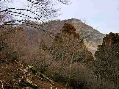 そして前方奥の木の間に、めざす藤原岳の山頂部が見えていました。