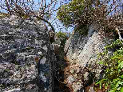 岩場というほどではありませんが、白倉岳東峰に向けて急坂を登ります。