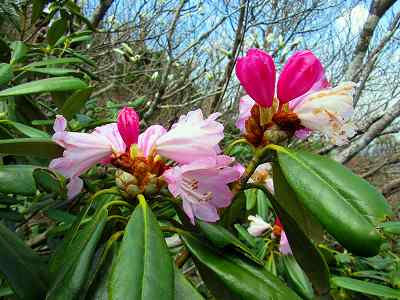 シャクナゲが咲き始めていました。ピンク色の花が鮮やかです。