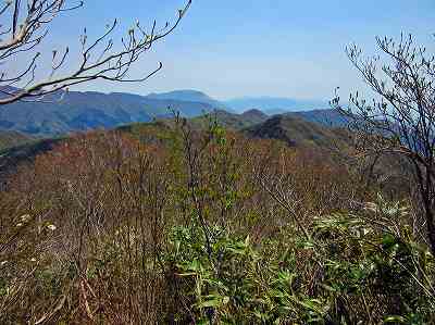 左の山は横山岳(1,132m)なので、その右奥は三周ヶ岳方面の山だと思われますが明確な山座同定