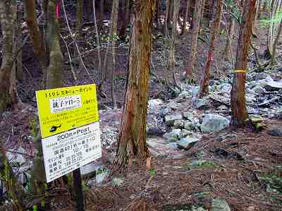 登山道はずーっとスギ林の中を登って行きます。この山も先日登った日本コバと同様、道程を示す Postが設置されているのがありがたいです。