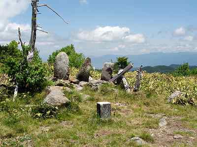 信仰の山なのでしょう、『御嶽神』 とか 『蔵王大権現』 と彫られた石碑が並び 2等三角点が設置されています。