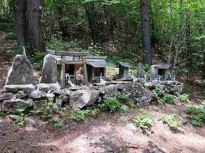 石碑も入れると8つもあるので迷いましたが、小さな鳥居がある2つの祠に登山の無事を祈りました。