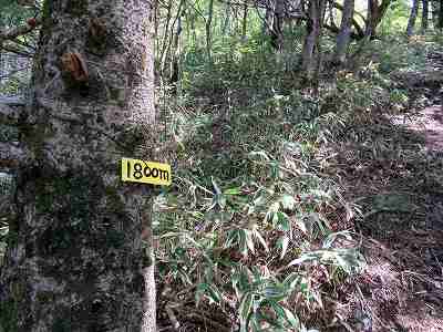 1700m標識を目当てに登ってきたのですが見つかりませんでした。 多分このあたりが標高1700mくらいのところだろうという場所で小休憩としました。