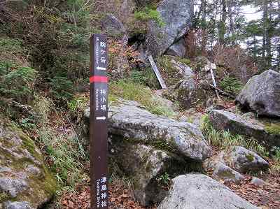 六合目 桂小場からのルートは御嶽山への古道だそうです。 地元の中学校の学校登山に使われているからでしょうか、登山道はよく整備され 案内標識もしっかりしているので助かります。 ここは六合目です。 〔六合目=9:35〕 |