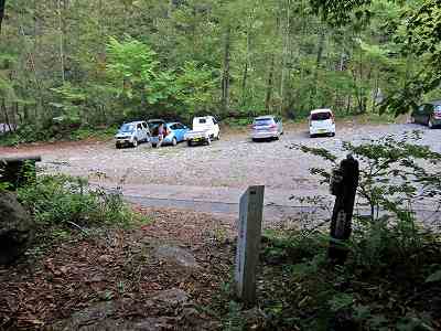 桂小場駐車場登山口 伊那市側から西へ小黒川渓谷を詰めた桂小場に20台くらいとめられる駐車場があります。 馬籠のKさんとはここで待ち合わせました。 登山届を小屋内のポストに投函して出発します。 〔桂小場駐車場登山口 発=6:30〕 |