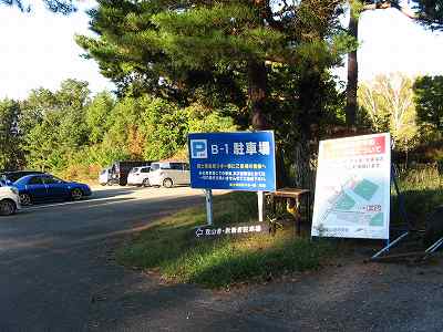 富士見高原駐車場 ゴルフ場の駐車場手前にあるこのB*1駐車場が登山者用に無料で提供されています。 馬籠のKさんたち2人とはここで待ち合わせ。身支度をして出発します。 駐車場を出たところに登山口への案内板が立っているのでわかりやすいです。 〔富士見高原駐車場 発=7:15〕 |