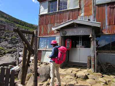 乙女の水から青年小屋はすぐ近くで、槌音を聞きながら5分ほどで到着しました。 聞こえていた槌音は増築工事のものでした。 『遠い飲み屋』 の赤提灯が下がっているのは3年前に来たときと同じです。 〔青年小屋 着=11:40〕 |