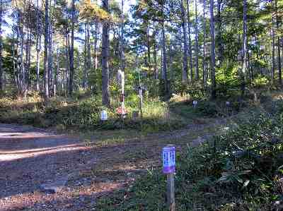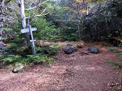 五叉路分岐 五叉路分岐まで戻ってきました。 あとは今朝登ってきた道を戻ります。 〔五叉路分岐=14:50〕 〔登山口=15:00〕 |