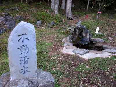 五叉路分岐から林道を歩いて10分、上動清水に着きました。 休憩場所にもいい公園のようなところで、トイレもあります。 ここで 『長命水』 を飲ませてもらいましたが冷たくておいしい水でした。命が延びるといいのですが。 〔上動清水=7:50〕 |