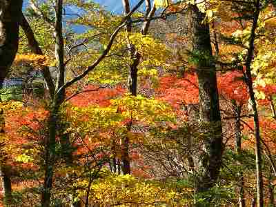 特に登山口から麻布山までの間は絶え間なく紅葉が続きますし、この間の林自体がすがすがしく、日本の山だなあ という感じを受けました。この日1日いい紅葉狩りハイキングを楽しませてもらいましたが、新緑の季節もきっと 素晴らしい山だと思います。