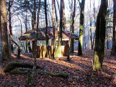 そして2つめの休憩舎・第2東屋 『ミズナラ』 がありました。 登山口を出発して1時間半歩いてきたので、ここで小休憩とします。 〔第2東屋『ミズナラ』=9:15~9:20〕 |