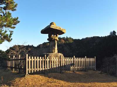 万人講常夜燈 鈴鹿峠の万人講常夜燈は重さ38t高さ5m44cmの巨大な石燈籠です。 ここにはトイレもあり、道の反対側に駐車場があります。 ここに車をデポし、1台に4人で乗り合わせて安楽峠まで行きます。 江戸時代の中頃、四国の金毘羅神社の常夜燈として鈴鹿峠に建てられ、 東海道を往来する行商人信者が常夜燈に火を燈していたそうです。 |
