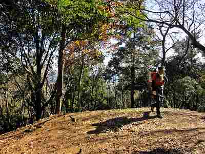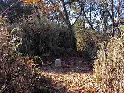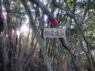 安楽峠から高低差で約50m、10分ほどで登り着いたのが最初のピーク相場振山です。 昔、江戸時代中期から明治期にかけて、旗やたいまつを用いて米相場などの情報を伝えていたところかもしれません。 今は樹木に囲まれていて展望はありません。 〔相場振山=8:10〕 |