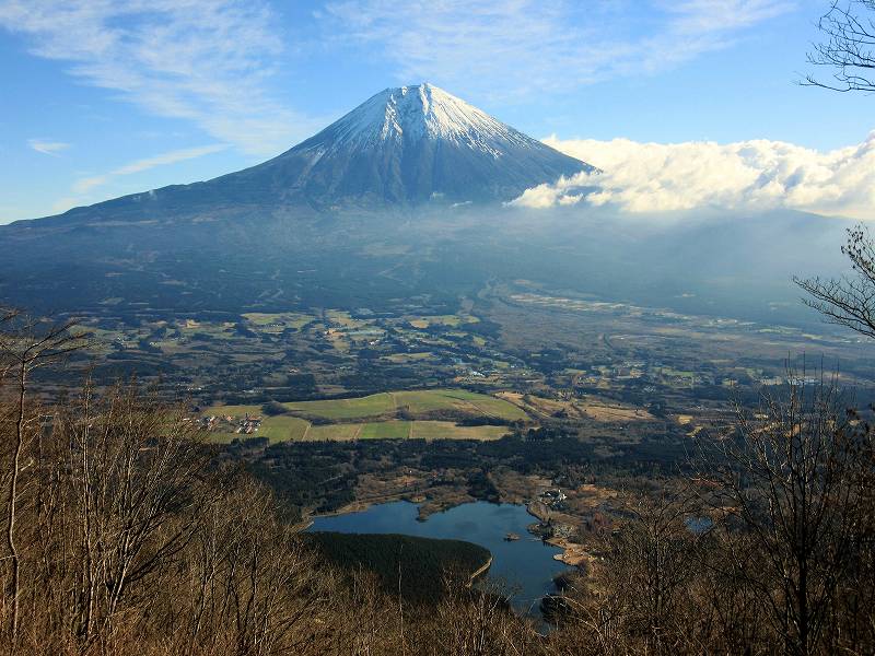 長者ヶ岳の山頂は東側と北西側が開けていました。 東側にはでっかい富士山、眼下の田貫湖が構図を引き立てます。これを見るために登ってきたといっても過言ではありません。 |